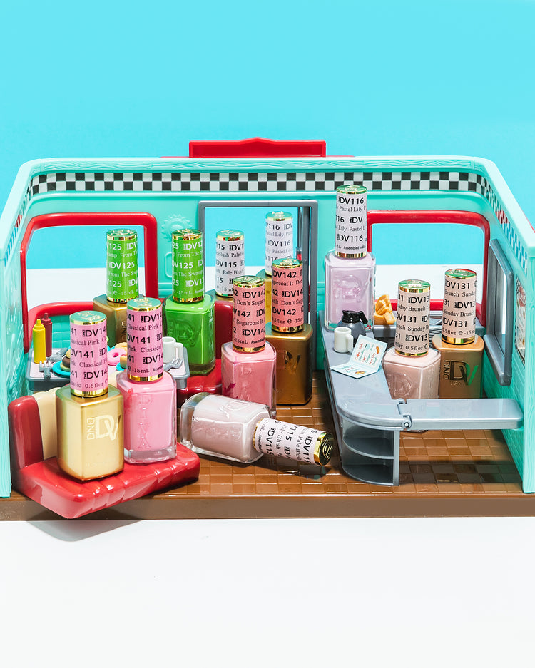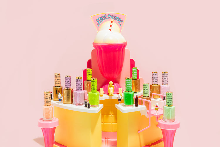 Welcome to the Soda Shoppe! Like a waterfall rushing down candy mountain, refresh yourself with a pop explosion of lovely lilacs, blushing rose, and velvety peach hues. Electrify the senses with crackling yellows and vibrant greens to quench that deep longing inside for sun-kissed days of childhood. Sit at the diner counter and travel back to simpler times with soft malted shades. Keep on chasing that nostalgic feeling with DIVA’s Soda Poppin’ collection, sure to replenish the mind and soul with its 36 sweet shades.